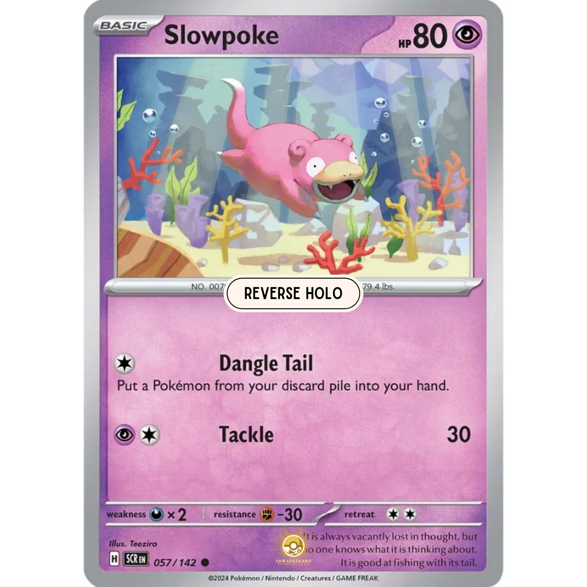 ![[ENG] Pokemon SV07 Stellar Crown: 057/142 Slowpoke [Psychic] [C - Common] (Reverse Holo)](http://sawadeekard.com/cdn/shop/files/111_4679e369-b168-4c81-bdc0-0a4c300e095b.png?v=1755211848&width=1445)