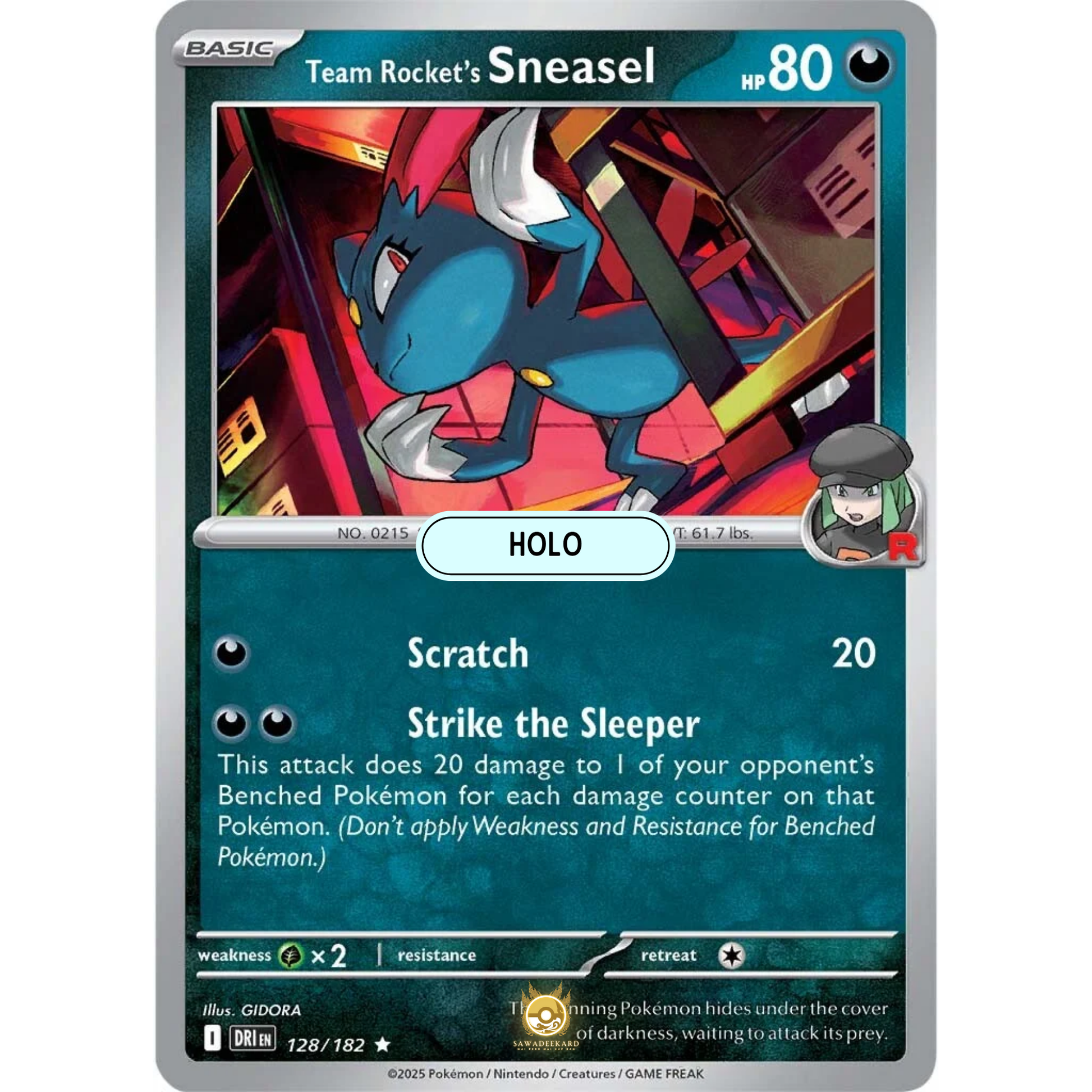 ![[ENG] Pokemon SV10 Destined Rivals: 128/182 Team Rocket's Sneasel [Darkness] [R - Rare] (Foil)](http://sawadeekard.com/cdn/shop/files/246_8a06a551-2207-4f59-b259-11646adb3b82.png?v=1753473327&width=1445)