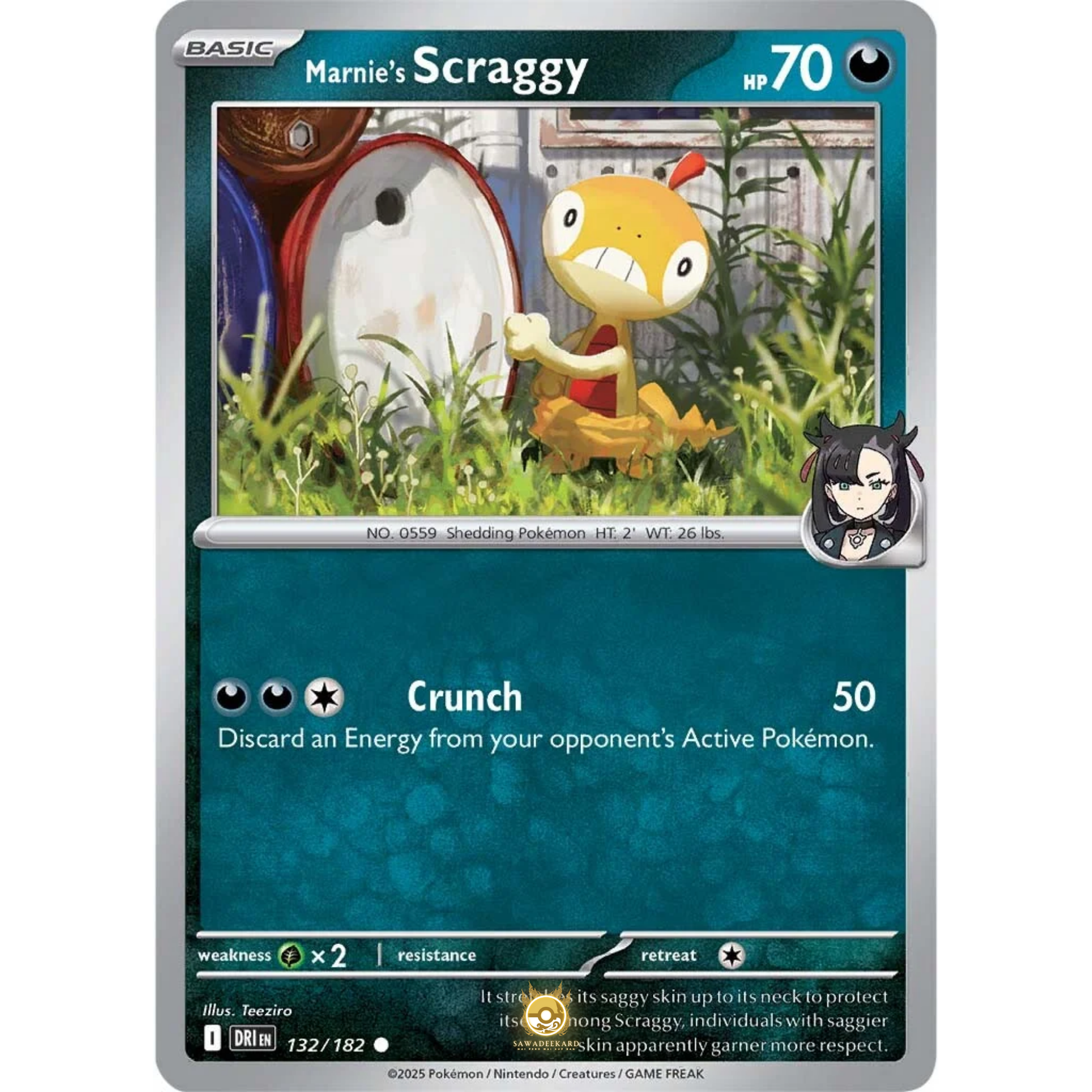 ![[ENG] Pokemon SV10 Destined Rivals: 132/182 Marnie's Scraggy [Darkness] [C - Common] (Non-foil)](http://sawadeekard.com/cdn/shop/files/254_476ea77a-8ef5-4624-8d4e-c16285f3f5a2.png?v=1753474692&width=1445)